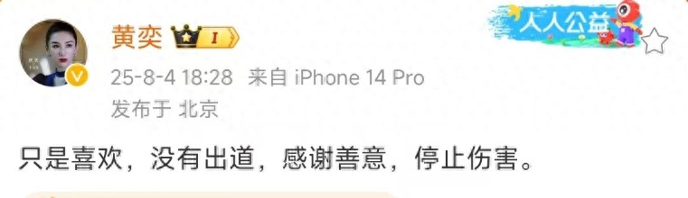 8月4日,演員黃奕在個人社交平臺發文回應網傳女兒鐺鐺出道當明星一事,她直言女兒學習唱跳只是愛好,并沒有出道。黃奕還喊話外界停止對女兒的語言傷害,言語里滿是對女兒的心疼。