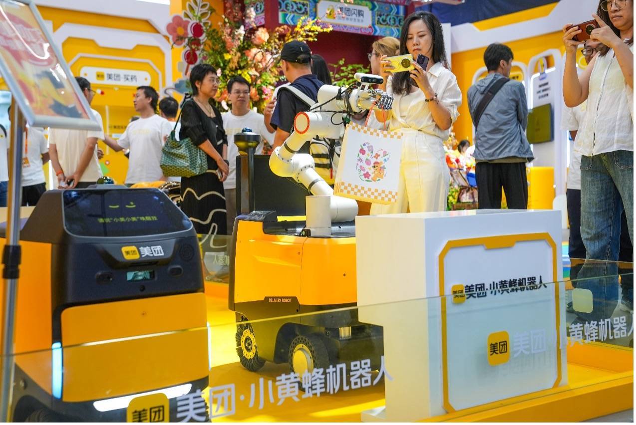 9月10日,2025年中國國際服務貿易交易會(下稱“服貿會”)開幕。作為科技零售企業,美團今年是第六次參展,攜旗下無人機、無人車及美團閃購、美團買藥、美團服務零售等業務亮相。其中,美團最新研發的室內外一體化具身智能配送機器人“美團小黃蜂”首次參展,“龍貓”大模型、“袋鼠參謀”“袋鼠管家”“智能掌柜”、AI(人工智能)數字員工等AI產品集中展出,吸引不少觀眾駐足。