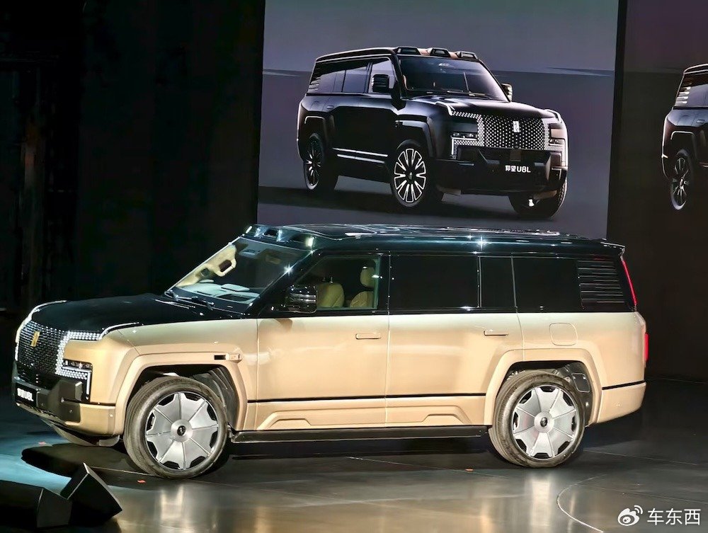 相比2023年上市的U8越野車型,U8L鼎世版弱化越野屬性,主打行政豪華定位,車長擴展至5400mm,軸距增加200mm達3250mm,采用六座布局,可選裝24K黃金車標,覆蓋商務接待與多成員家庭出行需求。