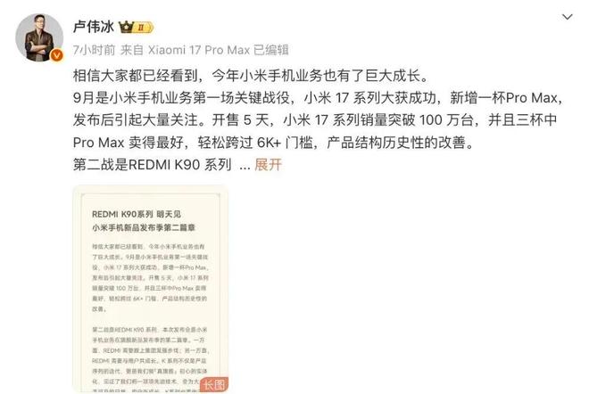 盧偉冰此前表示,“全新的 K90 系列有兩點變化就是提檔和變陣。第一,產品發布時間提檔,從十一月提前至十月。第二,K 首次推出Pro Max版本,也是集團今年的第二款 Pro Max。”