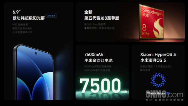 小米17 Pro Max配備了6.9英寸全RGB排列的超級像素超級陽光屏,峰值亮度為3500尼特。