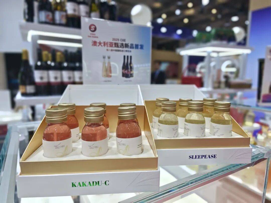 本次進博會,澳大利亞展臺共首發(fā)12款新品,均為首次亮相中國市場。其中,卡卡杜李皇冠來喜無醇氣泡葡萄酒源自維多利亞州西斯科特葡萄產(chǎn)區(qū),以98%高純度西拉與莫斯卡托葡萄汁為基底,零酒精配方,完整保留葡萄本真風味。白款散發(fā)柑橘果香,酸甜平衡;粉款蘊含蜜桃、樹莓與荔枝的清新層次,氣泡細膩,搭配便捷旋蓋設(shè)計,更易保存。